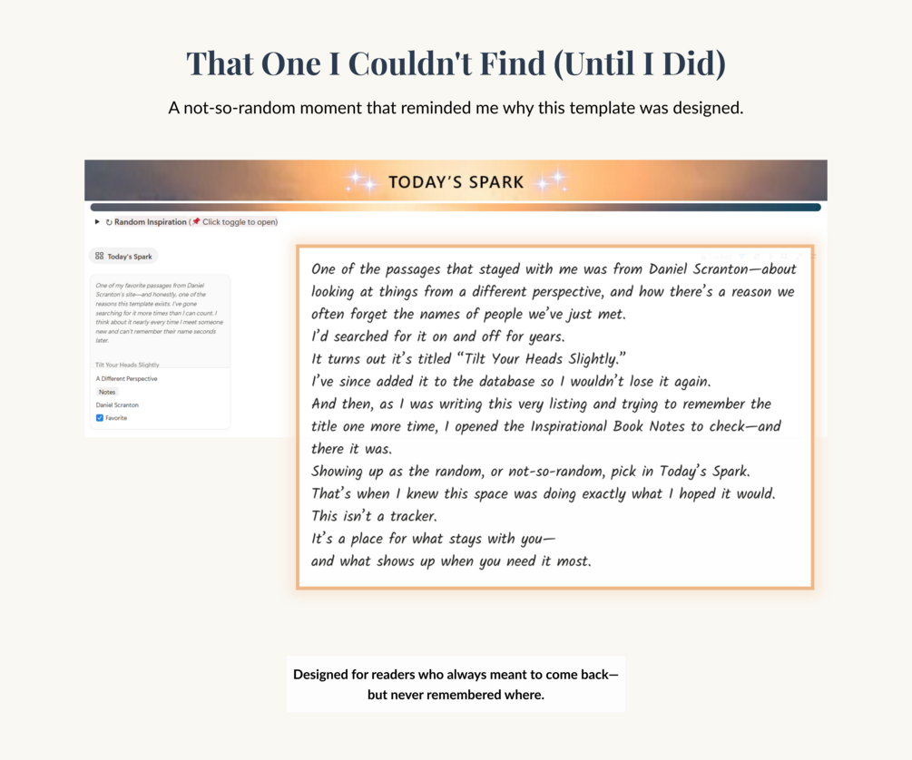 Sticky notes, underlines, scribbled thoughts in the margins—none of it was working. I’d spend days, weeks, sometimes years trying to find a passage I remembered feeling… but couldn’t place. ⏳📝