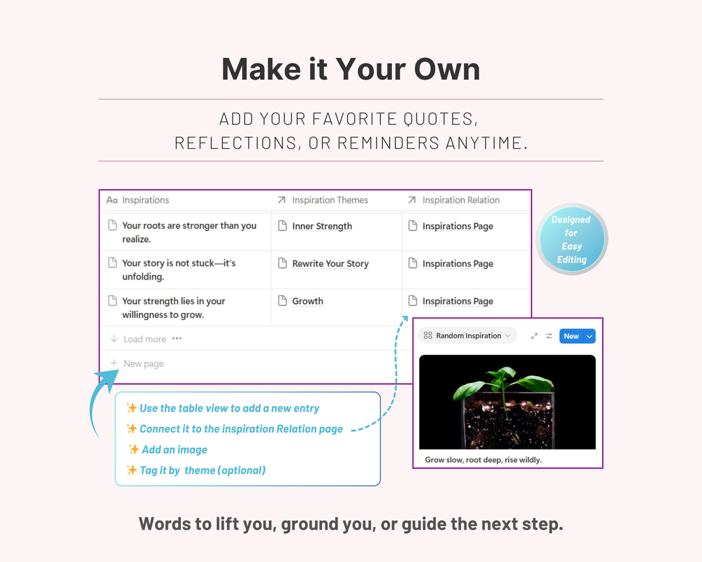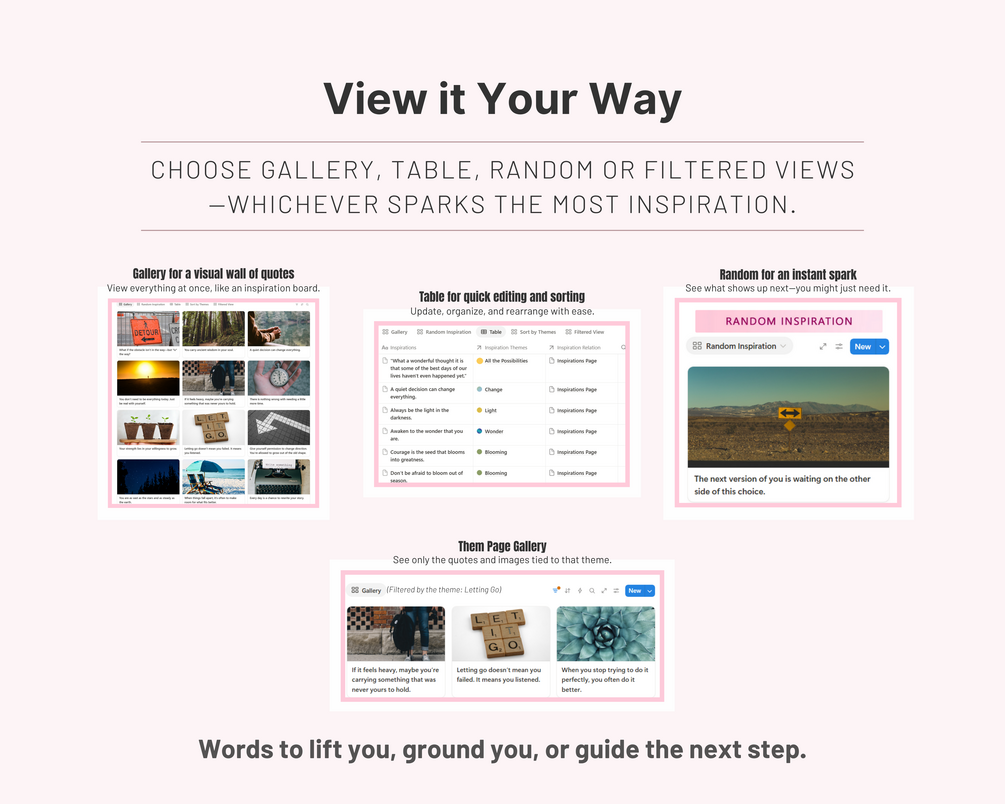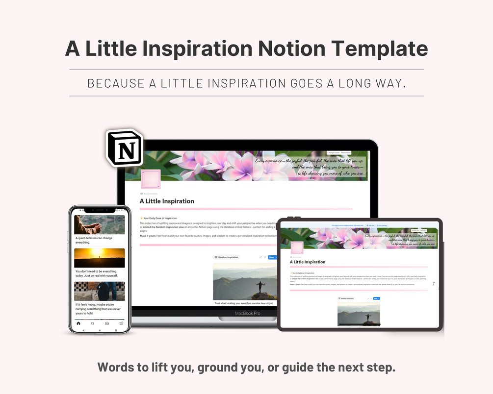 Notion Inspiration Template | Daily Quotes Dashboard | Digital Quote Keeper | Aesthetic Notion Page | Positive Words & Reflections