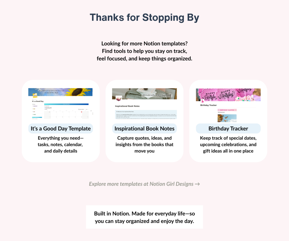 Be sure to also download the free New to Notion Mini Manual—it’s a hands-on beginner’s guide that will help you get even more out of this template.